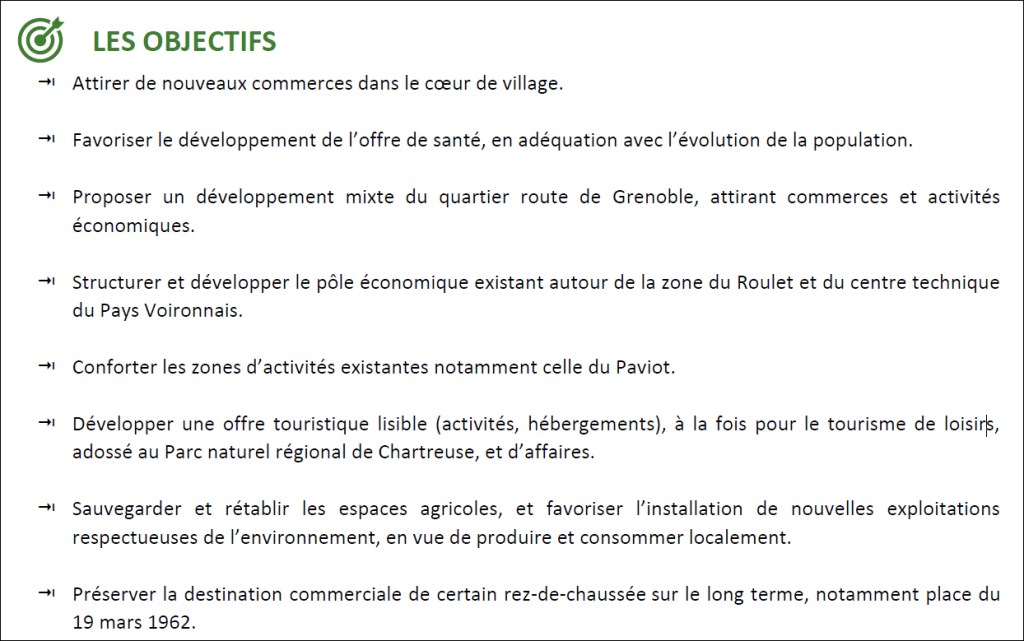 « Comme la parcelle est en zone Ub, [la maraîchère] rencontre des difficultés pour s’installer. Et dans la révision du PLU, la mairie ne propose pas que la zone passe en agricole de peur que le PLU soit attaqué. Aussi, comme cela se fait dans l’agglomération grenobloise où le PLUi (plan local d’urbanisme intercommunal, NDLR) autorise les installations agricoles en zone urbaine sous condition de ne pas créer de nuisances pour le voisinage, je propose à la mairie de réexaminer les interdictions en zone Ub. Et ainsi, la mairie viendrait nourrir un point de son PADD (Projet d’aménagement et de développement durables, NDLR) : favoriser l’implantation et le développement des activités économiques, agricoles, touristiques et commerciales locales. »